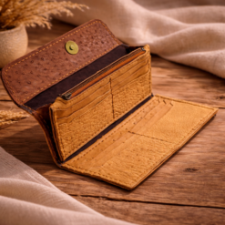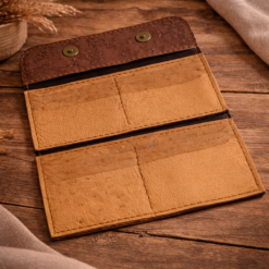 Handstitched ladies’ purse made of full grain leather with two or one open pockets, one inside zipped pocket or outside zipped pocket and 14 card slots. Close with two magnetic closures. Stitched with waxed thread. With of without lining.